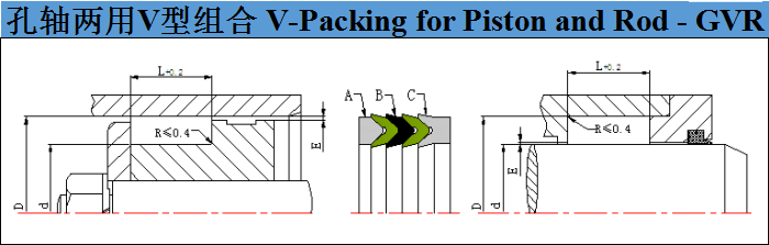 標準材料V型密封環:丁晴橡膠NBR、氟橡膠FKM、聚四氟乙烯PTFE、尼龍POM、聚甲醛PA支撐環:丁晴橡膠NBR、氟橡膠FKM、聚四氟乙烯PTFE、尼龍POM、聚甲醛PA